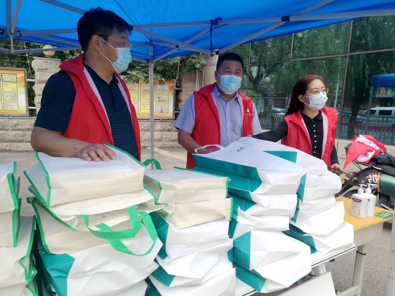 本次教材发放时间紧、任务重,为保障工作顺利进行,李明德校长带领中层以上干部,不到七点前就来到学校,对设立的教材分发点和桌椅进行了严格的消毒。陈政、何亮、李宪伟、尹开忠和李腾几位主任,把各班级的教材一趟一趟运到学校门口,李明德校长带领校级干部把教材按科目摆好,装到袋子里,一袋袋教材“整装待发”。