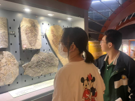 河南地质博物馆矿物展厅中,学生观察孔雀石天然渐变色,卢娟老师关联北宋青绿山水技法:“‘三矾九染’与矿石层叠色彩异曲同工。”