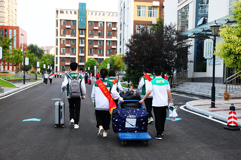按照上级要求,家长不能进入校园,学生一旦进入校园就不允许外出且实行全封闭管理。所携带书籍、被褥、日常用品很多,大包小包,怎么搬运?但当他们看到身穿红马甲的学校领导、老师,身披绶带的学生志愿者、以及身穿绿色执勤服的交警支队六大队交警们时,家长们放心了。学校的全体领导、老师和学生志愿者一边拿东西,一边维持秩序,同时还耐心地解释着。“谢谢老师!”“谢谢叔叔!”“谢谢同学!”家长们、孩子们一句句真诚的感谢温暖了整个校园,驱散了身心的劳累。