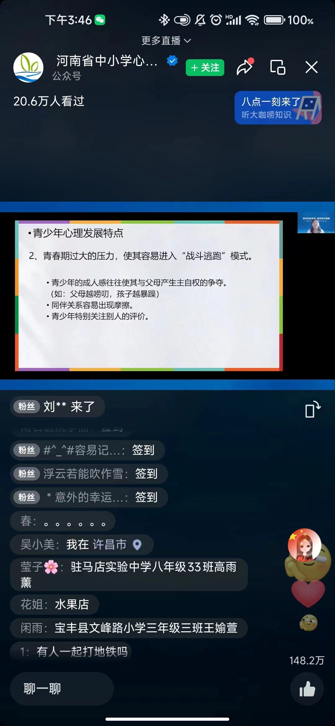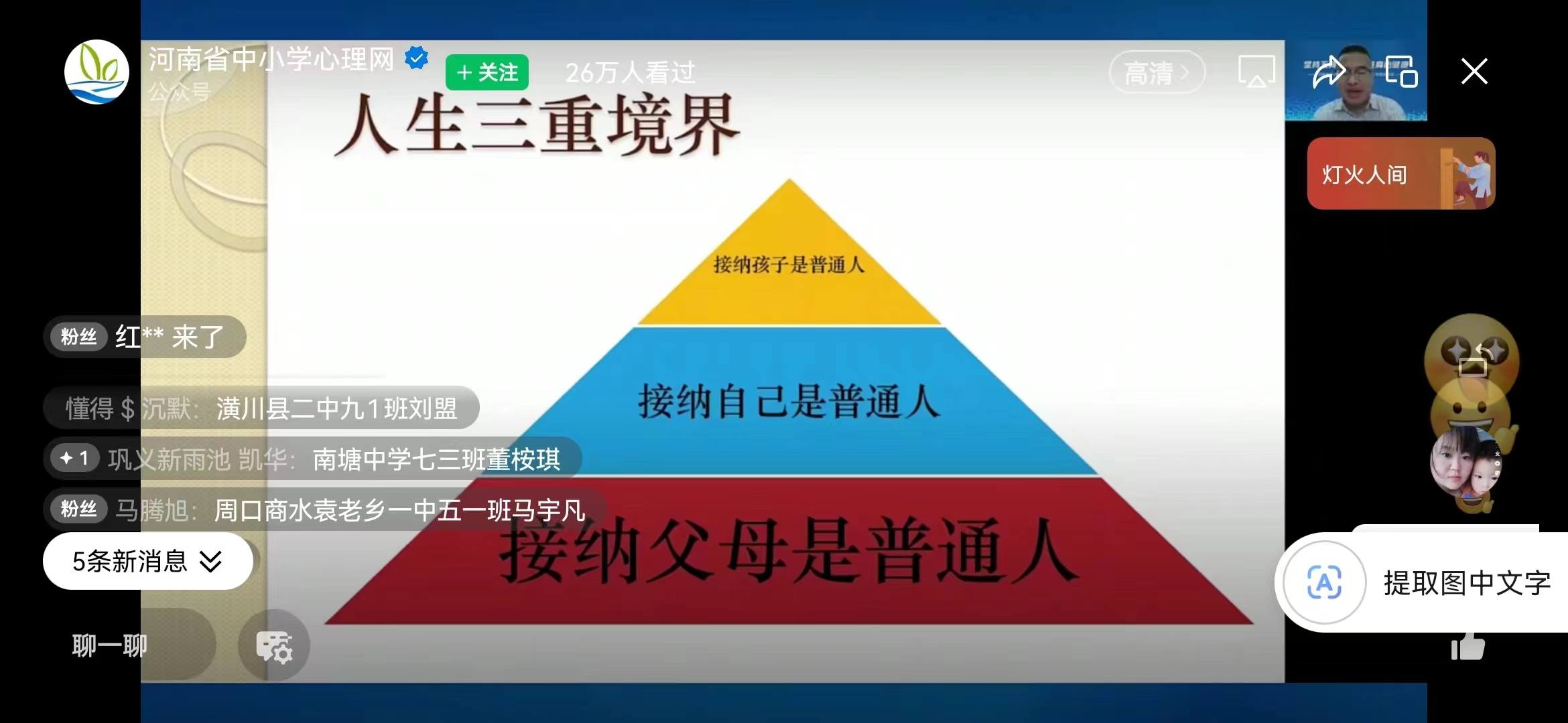 这次培训以网络直播的形式呈现,不仅方便快捷,而且完全免费,为广大家长和老师们提供了一个宝贵的学习平台。专家们通过深入浅出的讲解,帮助大家认识到高中生面临的压力和挑战,并提供了切实可行的应对策略。