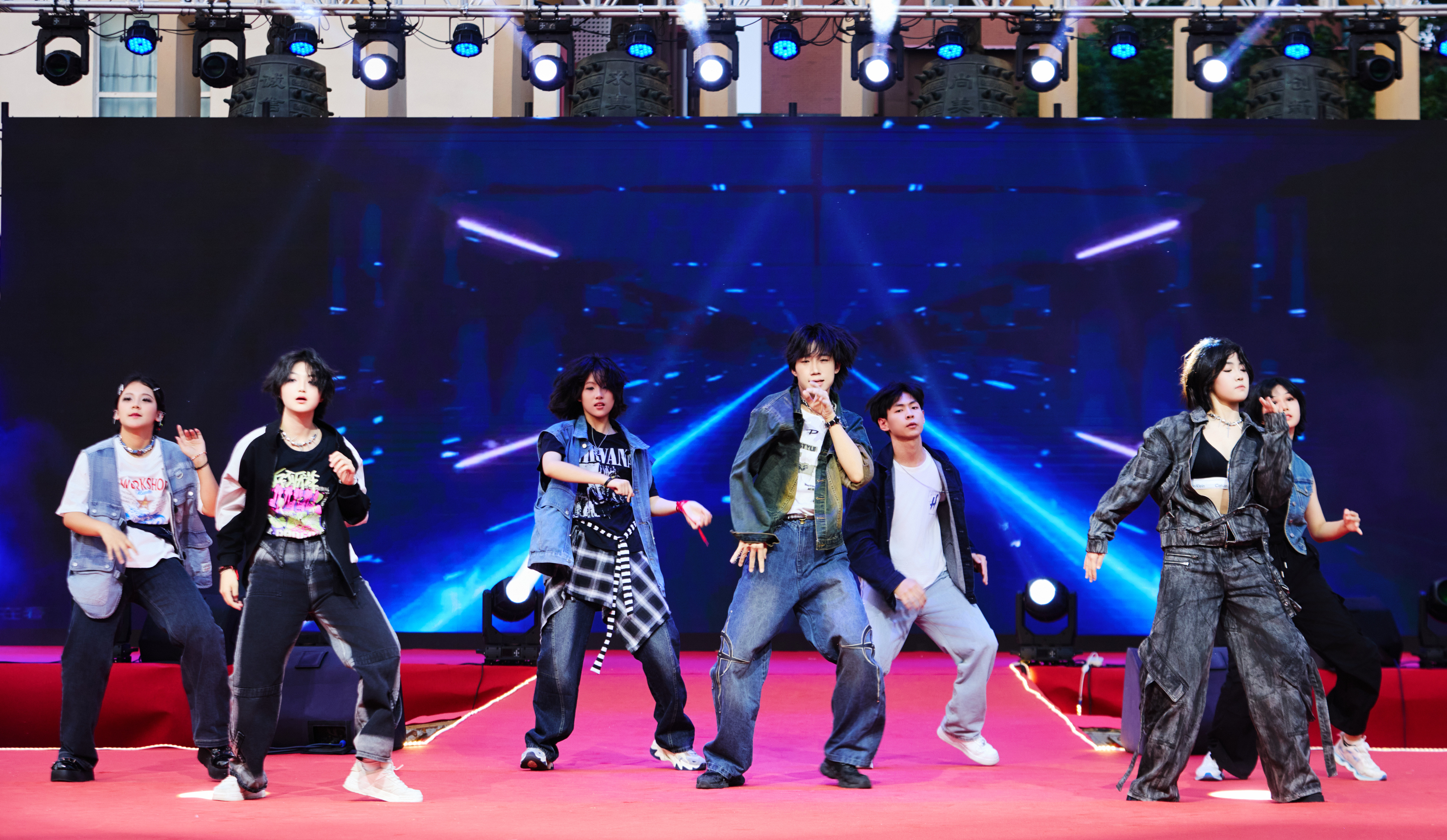 华夏舞动中国龙,普天同庆鼓东风。龙,作为中华民族的图腾,象征着祥瑞和力量。校舞蹈队的同学们巧妙地将舞扇与舞龙相结合,用精湛的舞技、整齐划一的步伐和生动形象的表演,充分展示出中华民族勇敢、智慧、奋发向上的精神风貌和中国传统文化的独特魅力;民族舞《幻世长安》以古代长安城为背景,融合了敦煌舞蹈和汉唐舞蹈的精髓,展现了一个繁华而宁静的古代都市景象。表演者用优美舒展、活泼灵动的舞姿让大家一睹梦幻般的长安盛景,感受灿烂的中华文明;每个人的生命都有属于自己的故事和梦想,无论前方遇到多少困难和挫折,我们都要勇敢面对,相信自己拥有一双有形的翅膀,它就是勇气、智慧和坚持……王亚娟老师和董佳琪同学合唱的歌曲《隐形的翅膀》给大家带来了无限感动与力量,相信在未来的日子里,同学们都能用这双翅膀在追逐梦想的道路上飞的更高、更远。最后出场的是校唱吧社、爵士社、民舞社带来的《每一天》,将现场氛围推向高潮,台下的观众齐声合唱,挥舞双手,释放自己的青春力量。