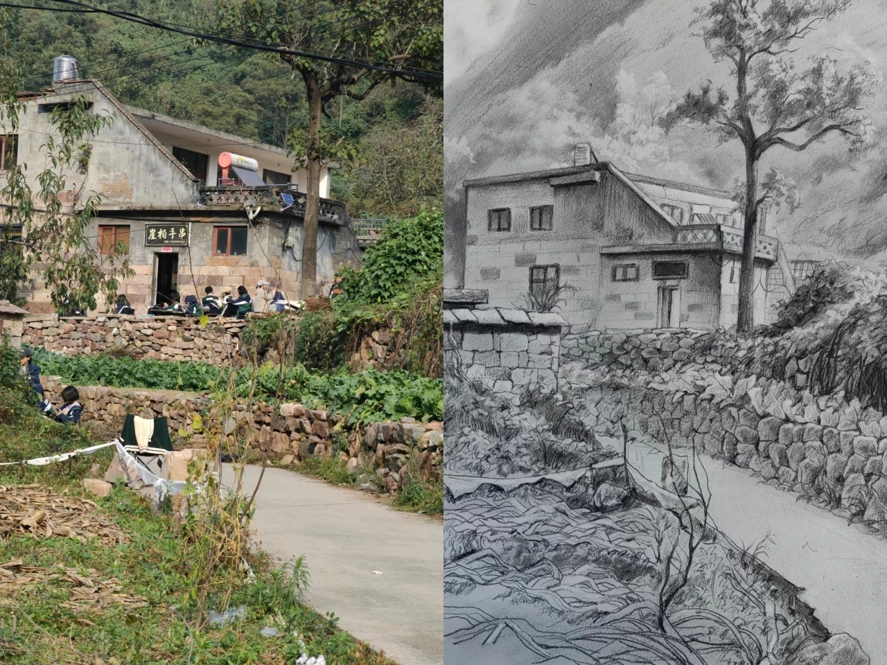在这里,同学们丹青有妙手,执笔著诗行,在色彩的冷暖之间熟练运用技巧,也在线面的协调中收获了初步感知。他们不仅亲近了自然,也在自然中汲取了创作的灵感,成为自己以后创作用之不竭的素材源泉。