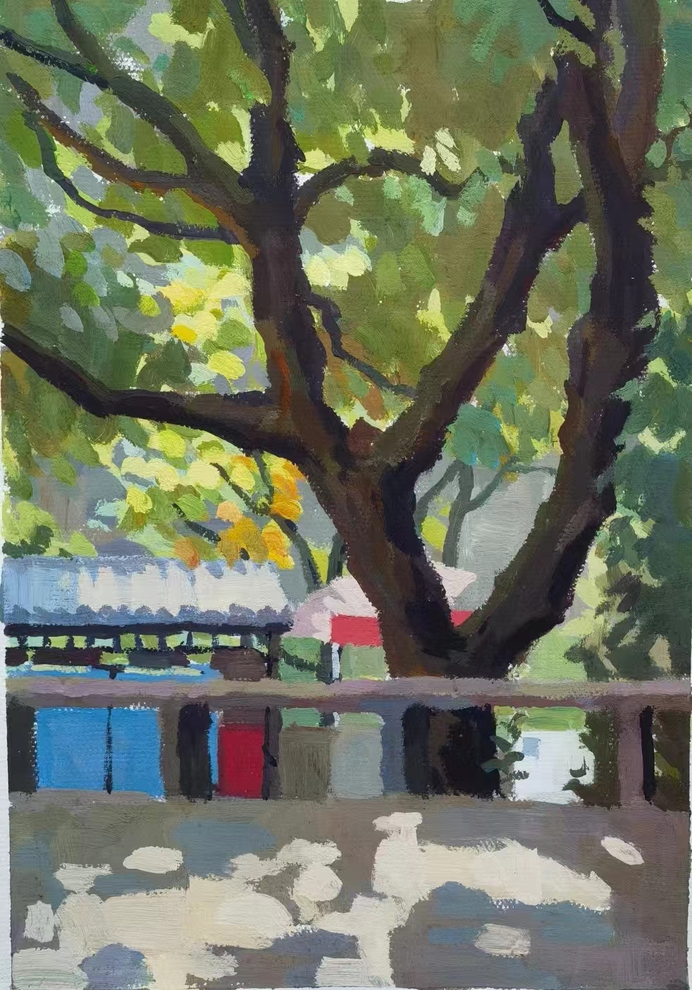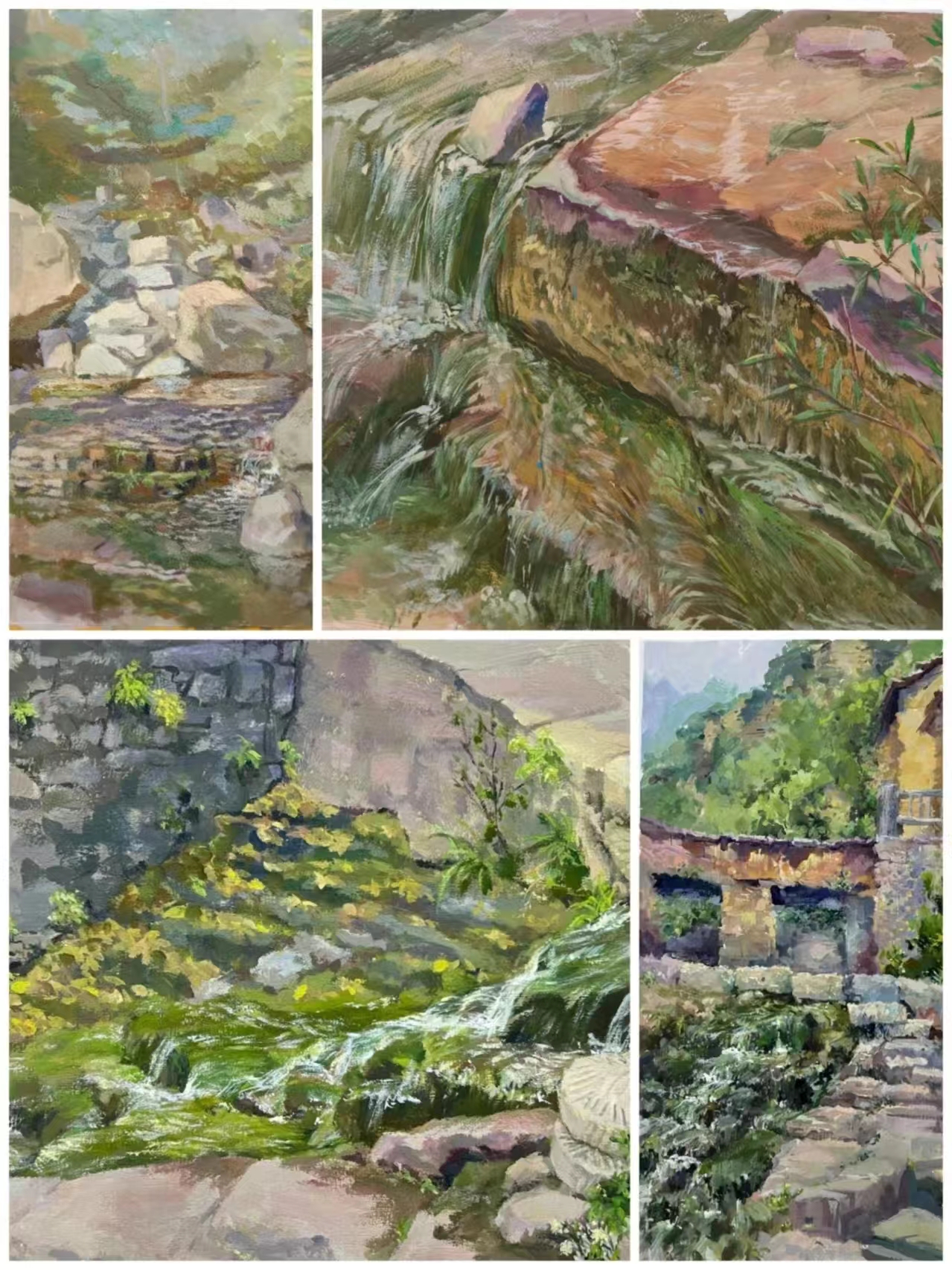 石板岩十日写生匆匆而过,郑州市第一〇六高中的写生也接近尾声。高一同学在草庙村的素描写生收获颇丰,他们在青山绿水之间用淡雅的笔调勾勒美景之轮廓,神形兼备,细致入微;高二年级在高家台的色彩写生也是收获满满,一幅幅美不胜收的画卷呈现眼前,美景跃然纸上,瑰丽鲜活的色彩讲述着大千世界的五彩缤纷,也照耀着学子内心美感的斑斓多彩。
