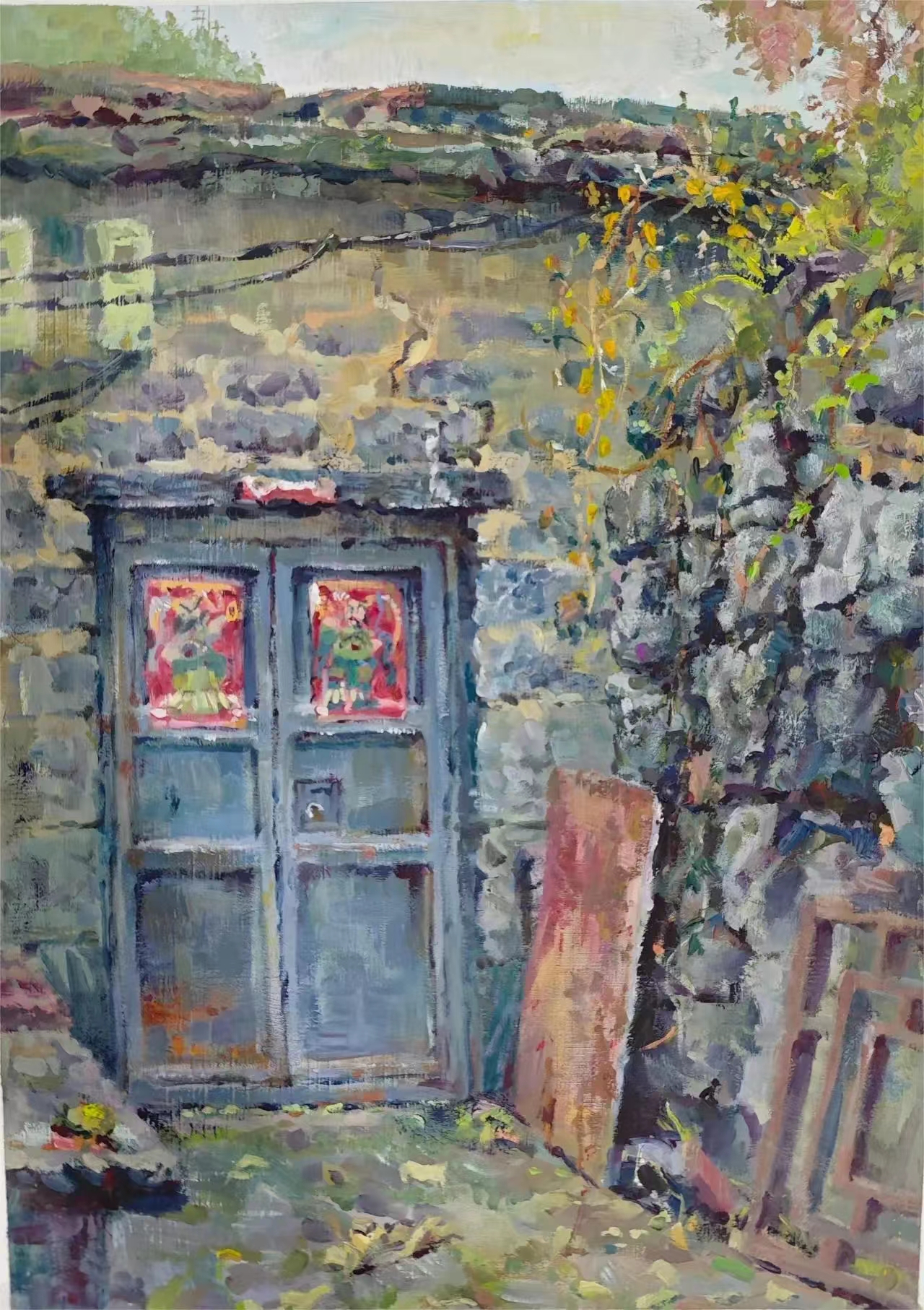 彩色,如同无名的神祇在太行上欢快跳跃留下的斑斓的水墨,热情拥抱了大千世界的纷杂万物,以致水流叮咚声响如在耳畔,石生草丛而奔涌欲出。太阳光与晨雾亲切拥抱过后,给予了薄雾更多彩的光芒,它还轻轻抚摸着大地,于是一切都景观都欢呼雀跃,所有人们都向阳而生。彩色,也照亮了花虫小景的全部轮廓,赋予了建筑晦明变化,墙皮之斑驳,树藤之瘦骨,乱石之嶙峋,楼阁之庄严,雄山之肃穆,民居之古朴,暮霭之昏沉,一切都在枯瘦的线条中呼之欲出,不加渲染,浑然天成。