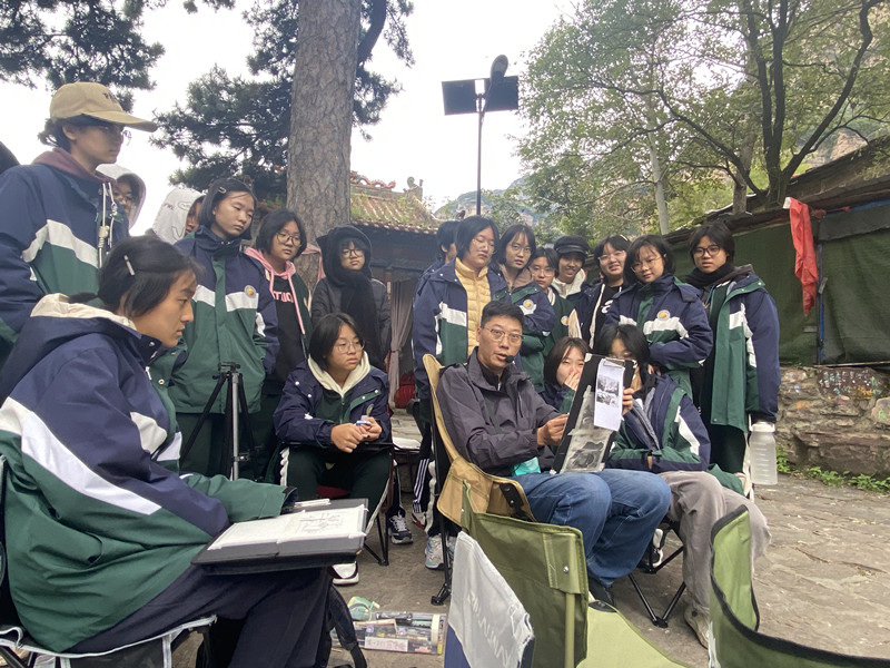 班主任们则朝暮相伴,不辞辛劳,默默守护在同学们身边。他们时刻关注着同学们的安全与状态,筑牢写生安全防线,为同学们提供一个安心、舒适的写生环境。美术老师们更是润物无声,倾囊相授,将美术创作的理论知识与实践技巧融于每日的写生教学之中,如春风化雨般滋润着学子们的心田。师生们通力合作,相互支持,共同绘制出一幅幅生动的太行画卷。