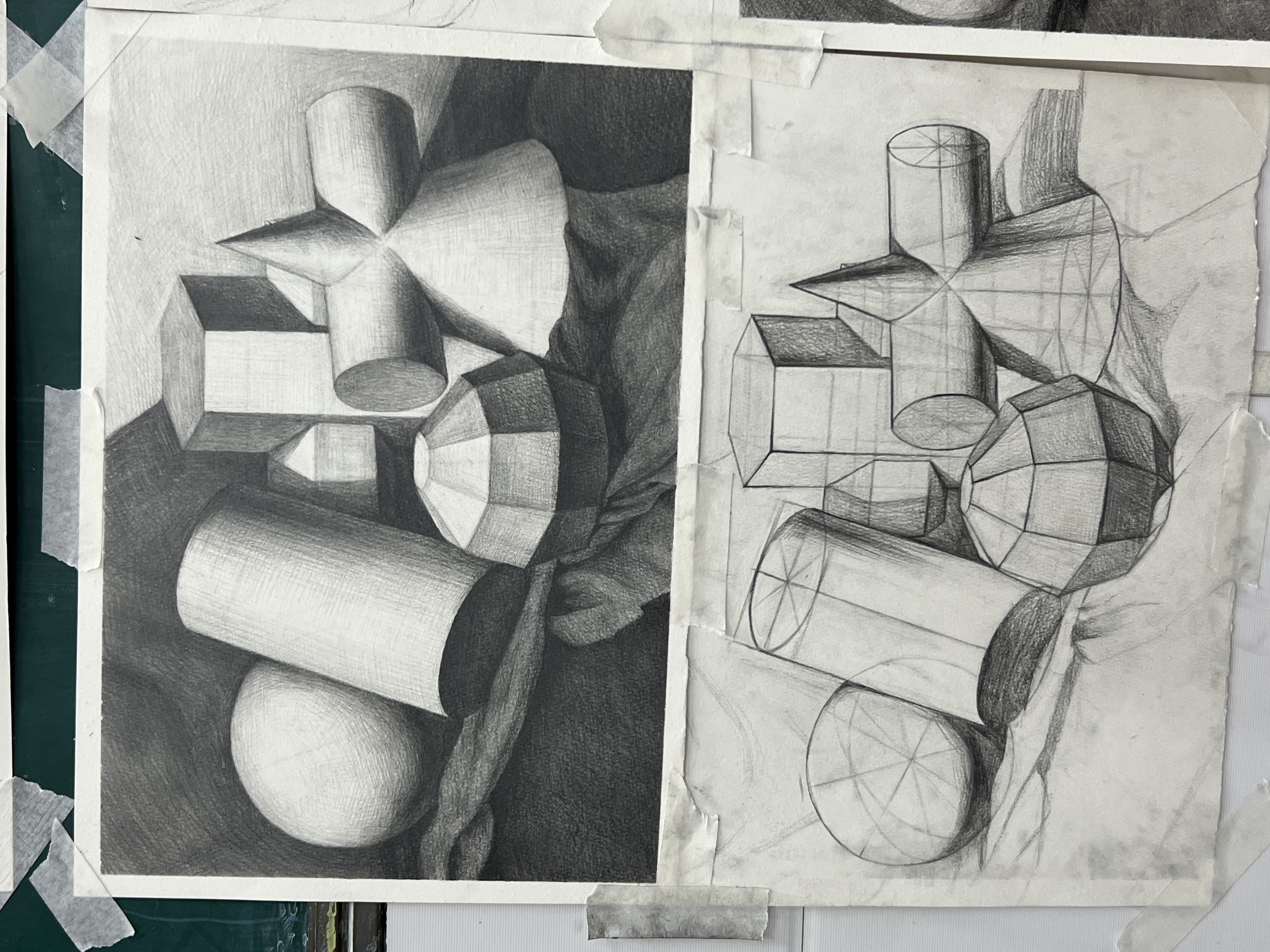 随后,高一美术组的其他老师也积极发言,分享了自己在几何体素描教学中的实践经验和创新方法。老师们一致认为,几何体素描教学应注重理论与实践相结合,既要讲解理论知识,又要引导学生动手实践,通过不断的练习和反思,逐步提高学生的素描水平。