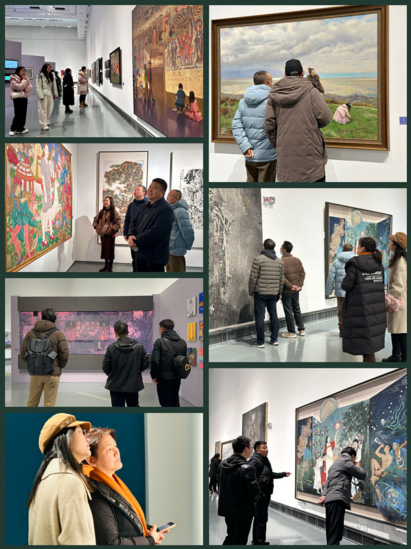 在展览现场,老师们仿佛置身于艺术的海洋,尽情领略着中央美院教师们的精湛技艺和独特创意。一幅幅书画作品,或笔墨淋漓,或细腻入微,展现了深厚的传统功底与现代审美情趣的完美融合;一件件雕塑作品,造型各异,质感逼真,传递着艺术家对生活的深刻感悟和对美的独特诠释;还有新媒体、设计等领域的作品,以创新的形式和前沿的理念,让老师们感受到了艺术在当代社会的多元发展和无限可能。老师们不时驻足凝视,细细品味作品中的每一个细节,相互交流着各自的见解和感悟,沉浸在这场视觉与心灵的双重盛宴之中。