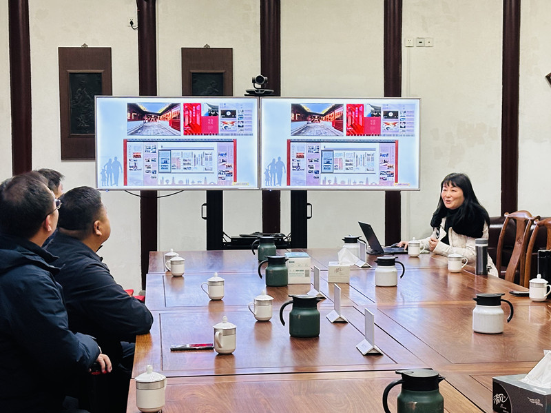 参观结束后,两校领导及教师齐聚一堂,展开了深入的座谈交流。苏州六中沈海泯校长热情的为老师们介绍了苏州六中的发展历史、办学理念、师资建设、课程开设以及校园文化建设等方面的情况。沈海泯校长还进行了题为《跨界与融合:新时代数字语境下的中学美育创新》的专题讲座,强调了“科艺融合”对美育发展的重要性,为106中学的美术老师们提供了新的思路和视野。106中学的美术老师们也积极分享了自己在教学过程中的经验和困惑,双方就艺术教育、课程设置、学生培养等共同关心的话题进行了深入的探讨和交流,现场气氛热烈,思维的火花不断碰撞。