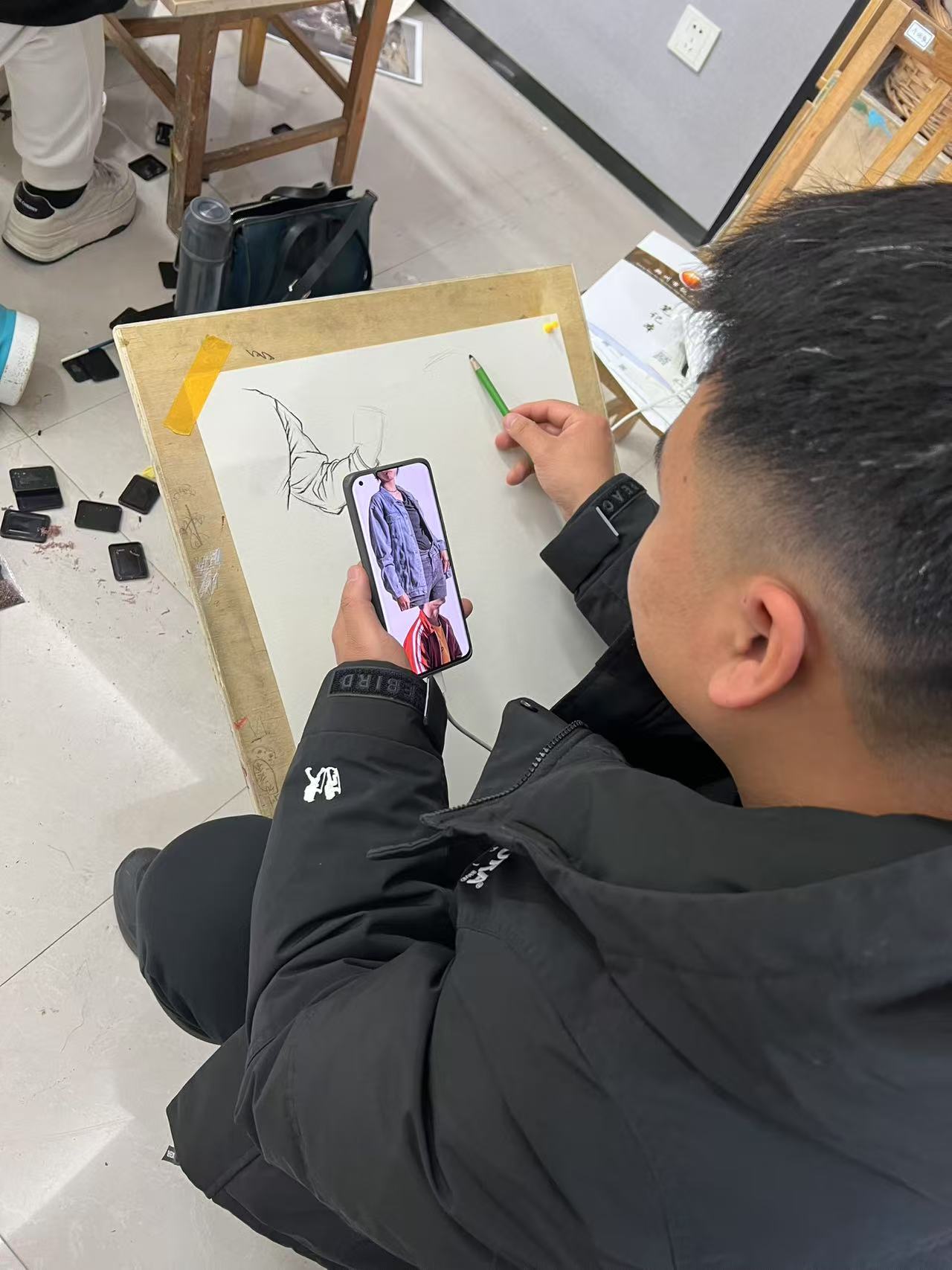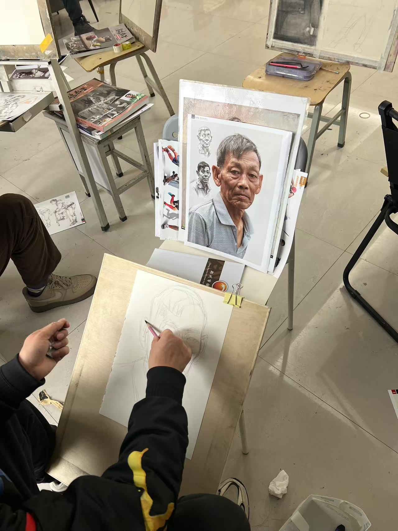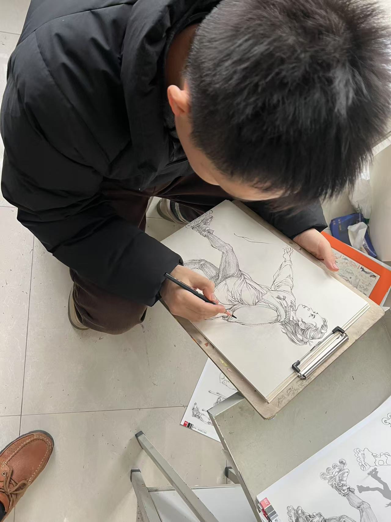速写环节则考验教师们的快速捕捉与表现能力。教师们或站立或坐卧,以不同的视角和姿态为模特进行速写。在紧张的氛围中,教师们迅速捕捉模特的神态与动作,用简洁有力的线条勾勒出人物的形象。