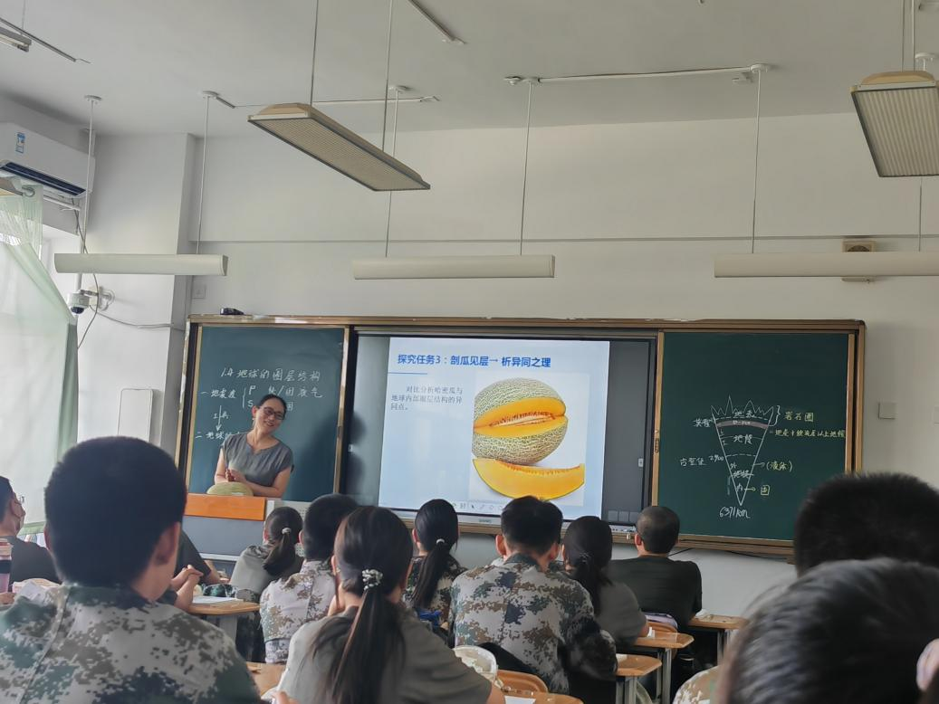 为进一步发挥引领示范作用,王婷婷老师带来了一节精彩的示范课《地球的圈层结构——从一颗瓜到一颗星球的探索之旅》。借助当地特产“哈密瓜”一镜到底,从甜美哈密、九三阅兵、 筑梦九天引入本节课的教学主题,充分挖掘本节课的思政元素,开启通过敲瓜识层—剖瓜见层—种瓜汇层,设计环环相扣的探究任务,充分体现了教师在课堂上由“演员”到“导演”身份的转变,促进了学生地理核心素养的落地,为哈密八中教师提供了可复制、可借鉴的教学模板。