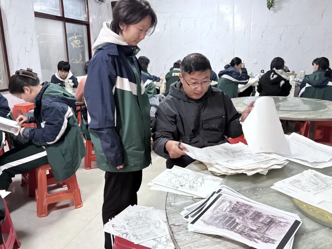 巍巍太行的轮廓融入深邃的夜空,时间进入属于专业教师团队的“第二课堂”——晚间教研活动。他们面前的“主角”并非教案,而是白天从学生画板上收集来的、尚带着山林气息的一幅幅写生习作。炭笔勾勒的嶙峋山石、水彩晕染的层叠秋叶、油画刀堆砌的厚重质感……每一张画纸都记录着少年们对太行风骨的独特观察与理解。教研的核心,在于“诊脉”与“开方”,讨论热烈而深入。窗外是静谧的太行夜色,窗内是思维碰撞的火花。老教师们分享着写生教学的“真经”,年轻教师则带来了新的敏锐视角。难点在剖析,明天的指导方案在细化。此刻的教研,如同在夜色中为学子们的艺术航程校准方向。他们深知,每一次精心的“备课”,都是为了明日太阳升起时,学生们能带着更明亮的眼睛、更自信的画笔,再次扑向太行的怀抱,让青春的才情在这片古老的土地上肆意生长。